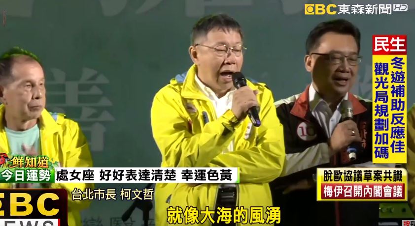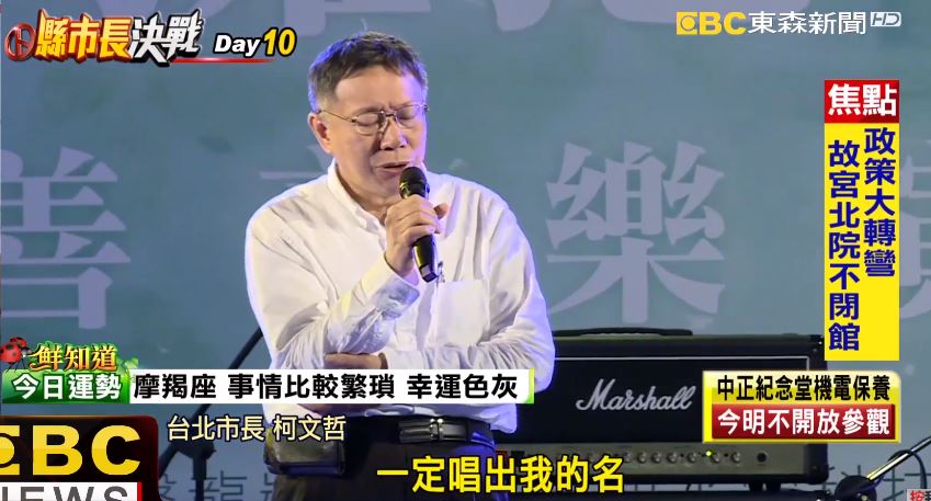 柯P白天掃街趕場,晚上接著參加慈善音樂會,一連熱唱5首歌,要拉近和選民的距離。