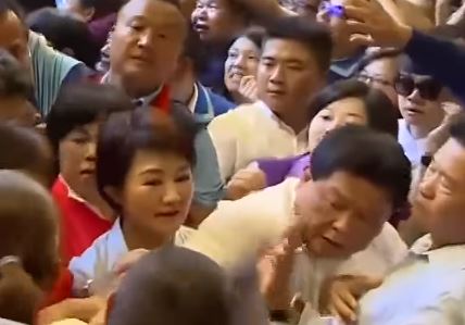 現場維安人員:「韓國瑜當選,慢慢,慢慢喔」。