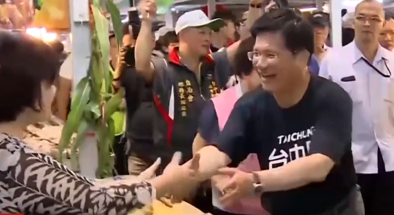 林佳龍一整天也是勤跑行程,一大早他先到建國市場拜票,攤商歡迎還有人送上好采頭、粽子,象徵包中。