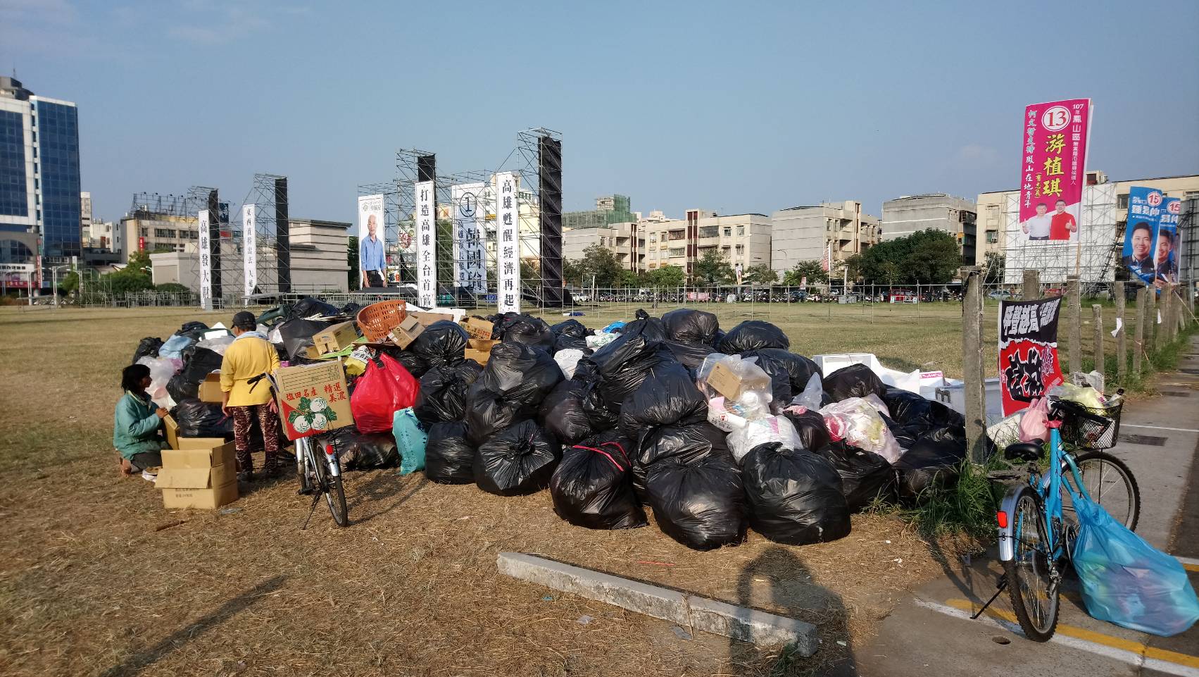 「18日上午清潔隊已經清理,清潔隊只負責馬路部分,至於租借部分的場地清潔及垃圾是主辦單位要自己處理的」,同時原PO也貼出多張造勢晚會結束後的照片,只見場地周圍堆有數包用垃圾袋裝的垃圾,草地上也散落著大大小小的垃圾,有用過的塑膠袋、紙張,現場雜亂不堪,原PO強調「地面垃圾也沒有整理好,真的糟蹋了,希望其他以後借場地(不一定是選舉),請愛惜,也請呼籲參與者要把垃圾帶走」。