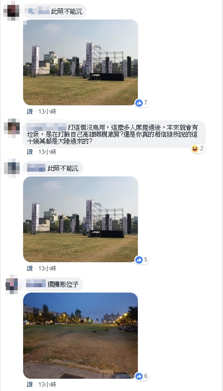 該貼文曝光後隨即遭他人打臉,「當天都有很人自動自發在撿垃圾,我看到你這張照片右邊一大包好像是故意倒在地上……」,甚至還有人在原PO發文後的30分鐘內趕到現場,意外揭開真相,並拍乾淨的草地,無奈反問「為什麼跟版主PO的差這麼多?」極度質疑是帶風向,其他網友則留言:「臉會腫,明明有人在整理」、「辛苦囉!下去領500元」。