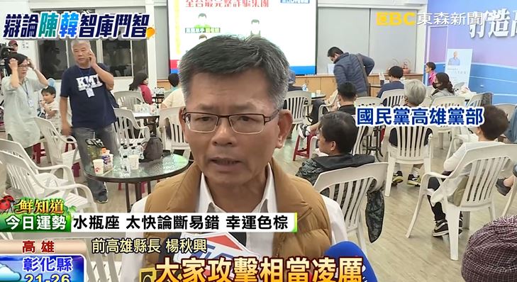 前高雄縣長楊秋興:「我覺得陳其邁當過代理市長,也當過立委10幾年,他對市政芝麻細節很清楚,不過我覺得他問的問題,我覺得是強人所難,韓國瑜回答也很好,他不是考公務員。」