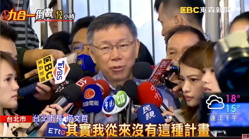 台北市長柯文哲:「這個問題我回答不下50次,第一點喔,其實我從來沒有這種計畫。」