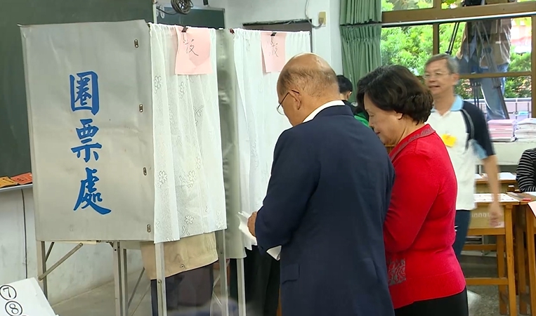 排了將近一個小時的隊伍,蘇貞昌夫妻倆才完成投票,今年因為加入公投,投票時間比較長,蘇貞昌帶著笑容離開投票所,結果如何,就交由選民來決定。