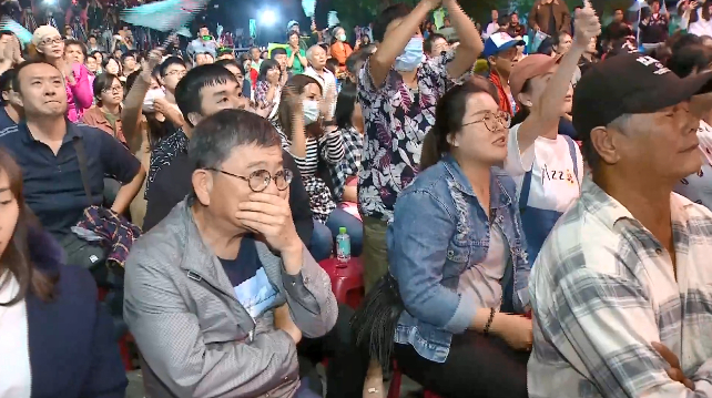 現場不少支持者的手背上都貼著貼紙,手裡也拿著旗子不停揮舞,現場不少支持者,一坐就是好幾個小時。只是隨著票數愈開愈多,陳其邁支持者臉上的表情也愈來愈沉重。