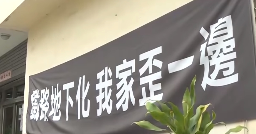住在鼓山台鐵地下化工地附近的住戶,掛起了白布條抗議這場地下化的工程,害得一堆房子出現龜裂和傾斜,阿伯家的外牆裂痕已經補過。