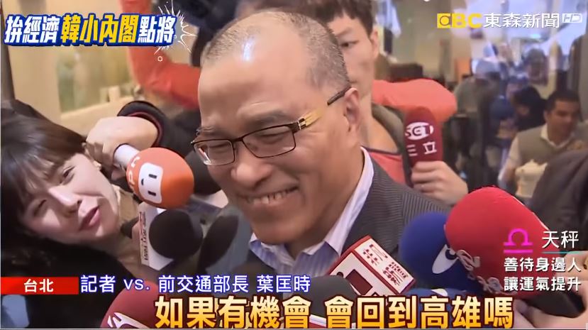 前交通部長葉匡時:「我是北漂老人(如果有機會,會回到高雄嗎?)沒有沒有(如果有機會,願意漂回去嗎?)不回答假設性問題好不好。」