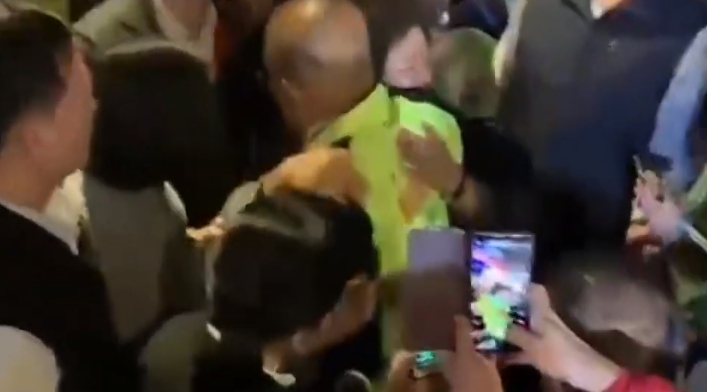 人海中,蘇貞昌展開笑顏,相見歡給彼此大擁抱,群眾也一路跟隨,一起回到板橋總部。