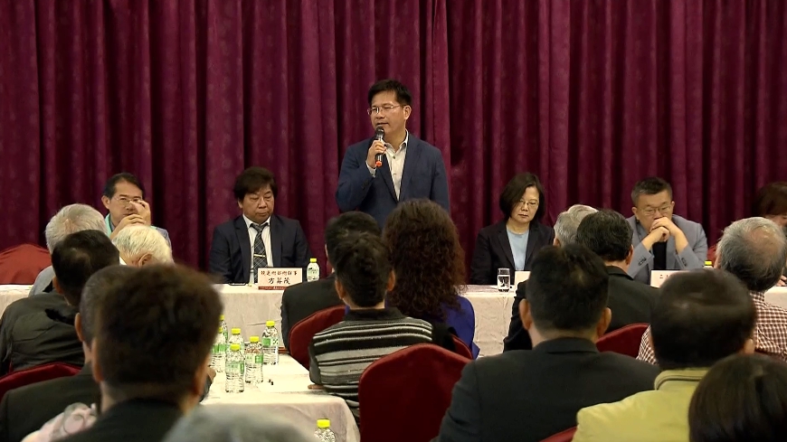 面對林佳龍市長點出失分的原因,蔡英文總統表情嚴肅,一邊聽一邊作筆記,畢竟這個時刻只有聆聽,才能找生機。