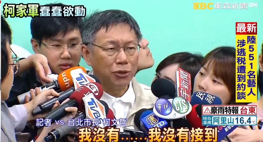 台北市長柯文哲:「民進黨有其他的人來跟你,談過合作修補關係這件事嗎?)有啦!其實民進黨裡面,我們朋友很多啊,(老柯是不是有打給你?)我沒有......我沒有接到,老柯(柯建銘)的電話也許他有打給我啦我沒有接到。」