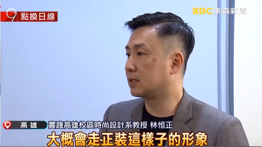 實踐高雄校區時尚設計系教授林恒正:「市長的一個身形,最近比較消瘦一點,所以我們選擇了西裝,來做身形的修飾,大概會走正裝這樣子的形象」。