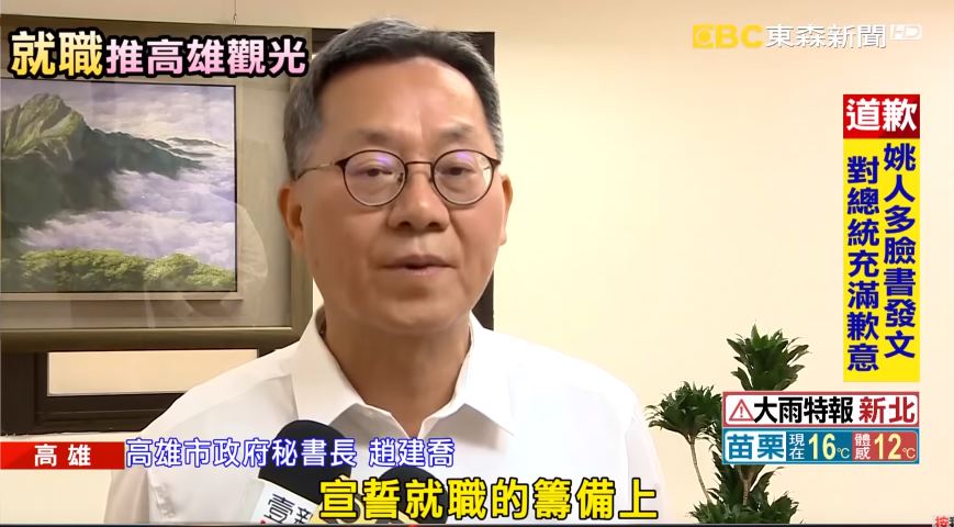 高雄市政府秘書長趙建喬:「2次的籌備會議上,我們都主要關注在整個籌備宣誓就職的籌備上」。
