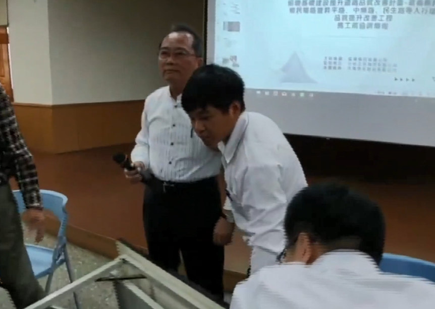 嘉義縣民雄鄉公所獲得前瞻計畫補助4800萬元,要在大士爺廟前的中樂路、昇平路,把200公尺柏油路改鋪地磚,但有鄉民認為沒必要,因此聚集抗議,公所特別舉辦說明會,但縣議員黃嘉寬跟鄉長何嘉恒一言不合,掀桌抗議,導致鄉長重心不穩跌坐地上。