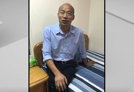 準高雄市長韓國瑜:「在一年兩個月以前來到高雄睡覺的小床,感覺像一個老兵一樣,守著一罐高梁酒,守著一瓶花生米,配上這張床感覺起來非常簡單。」