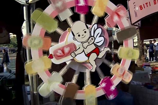 攤販:「(這是你自己做的?)對,(當初怎麼會這麼發想?)我會覺得說高雄已經二十幾年了,沒有旗海飛揚,這次慶祝韓市長就職,想說把高雄弄個旗海飛揚,其實也蠻感人的。」