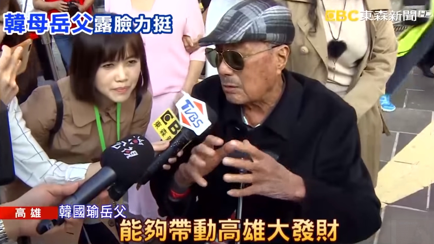 高雄市長韓國瑜的就職典禮場面盛大,而鮮少露面的韓國瑜母親也低調現身,韓國瑜的岳父李日貴也專程坐輪椅在家屬陪同下來到高雄,就為了支持女婿。