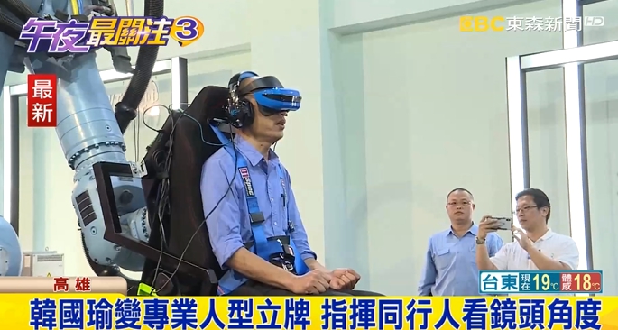 VR學雙語,智慧型路燈,韓國瑜都很仔細聽,接下來這個機械手臂加體感VR,他猶豫了。