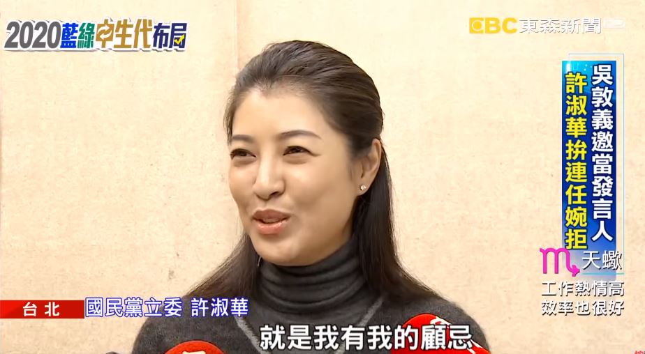 國民黨立委許淑華:「畢竟區域的立委,都要以自己的選舉為主,我覺得沒有算拒絕啦,就是我有我的顧忌,然後主席也覺得他能夠理解」。