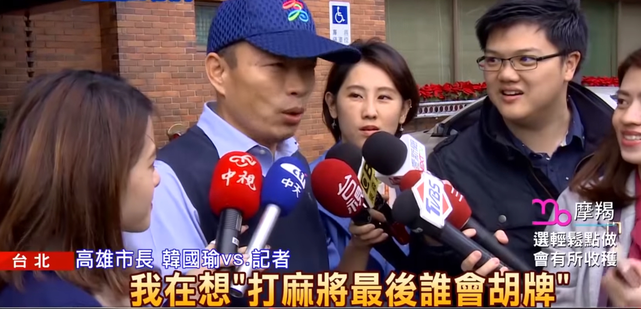 高雄市長韓國:「(記者:市長,今天便當會聊了什麼)沒有聊,我沉默都沒有講話,我在想『打麻將最後誰會胡牌』哈哈哈哈,誰會胡牌,不說了不說了。」