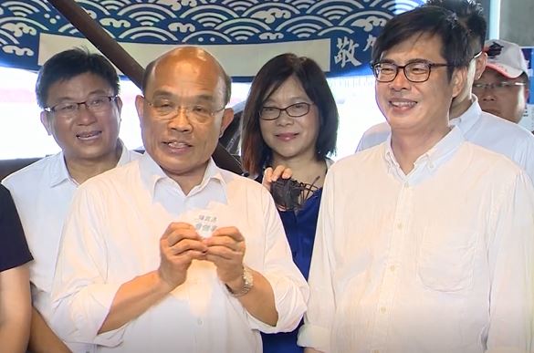 準行政院副院長陳其邁:「謝謝韓市長的祝福,那因為高雄其實是我們共同的故鄉,所以我之前也講過,不管是韓粉、邁粉,在選舉過後大家就是愛與包容,大家要共同合作,讓我們的家鄉更好,所以我也謝謝韓市長的祝福,在這裡也替韓市長加油。」