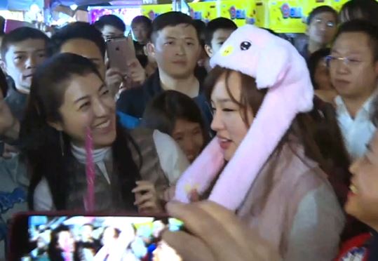 韓冰一現身天津路年貨大街,現場猶如粉絲見面會一樣,人人都搶著握手合照,甚至有老闆直接把整塊布條拆下來,只為了讓韓冰簽名。