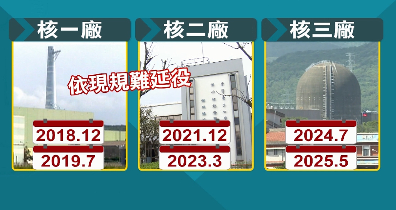 至於核電部分,經濟部表示,核一1號機已進入除役階段,2號機今年7月執照就到期,延役申請不及,核二、核三機組延役,更面臨四大困難,核二延役申請已超過期限,核三就算有機會,地方政府反對下,核廢料無處去,換句話說,核能延役或重啟,客觀條件已經不可行。