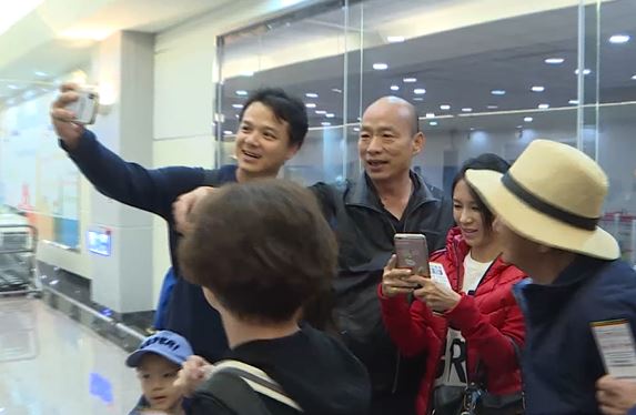 一到了機場,不只大批媒體守候,就連許多民眾瞬間都化身為粉絲,宛如是偶像明星,還有一家人爸爸媽媽以及小孩都是韓粉,希望能跟韓國瑜來張合照,親和力十足的韓市長當然是來者不拒。