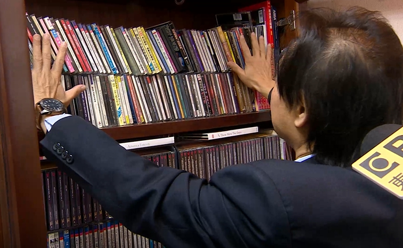 介紹收藏的CD,手上也有搶眼大錶,同樣是大錶面,同樣是皮錶帶,這種粗曠的錶款正是王世堅的最愛,而且這次一送就是一對在8日寄過來。