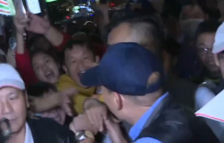 一回頭跟民眾握手,好幾隻手跟著伸過來,維安人員趕緊隔開人群,維持現場秩序,因為民眾真的是太熱情了。