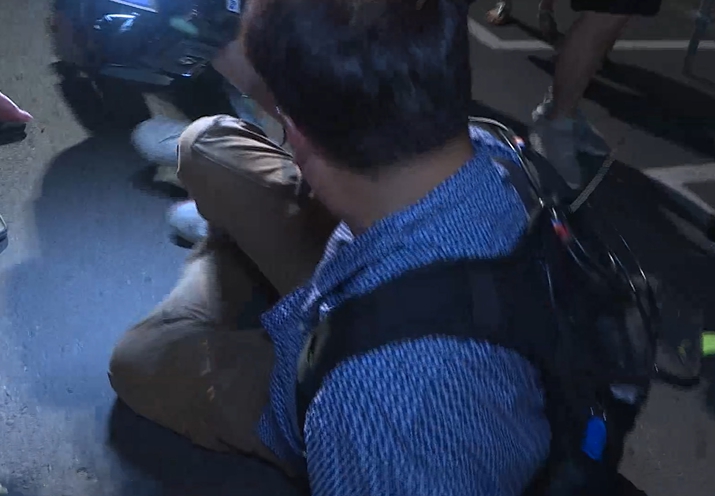 無法近距離接觸,也要拿出手機直播,連舞台後方區域原本有黑幕遮住看不到,有人往上爬到高處,還一度把黑幕扯開,但也因為人太多,還有攝影記者不小心被絆倒了。