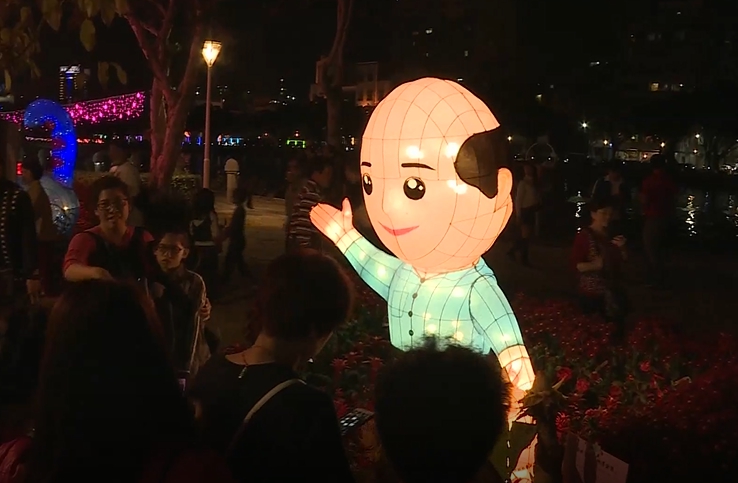 沒看到本人沒關係,燈會現場還有Q版的韓國瑜造型花燈,同樣吸引不少人搶拍照,可見韓國瑜一家人魅力有多大。