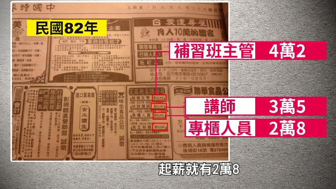 ▼補習班主管在民國82年時,起薪是4萬2千元(圖/東森新聞)