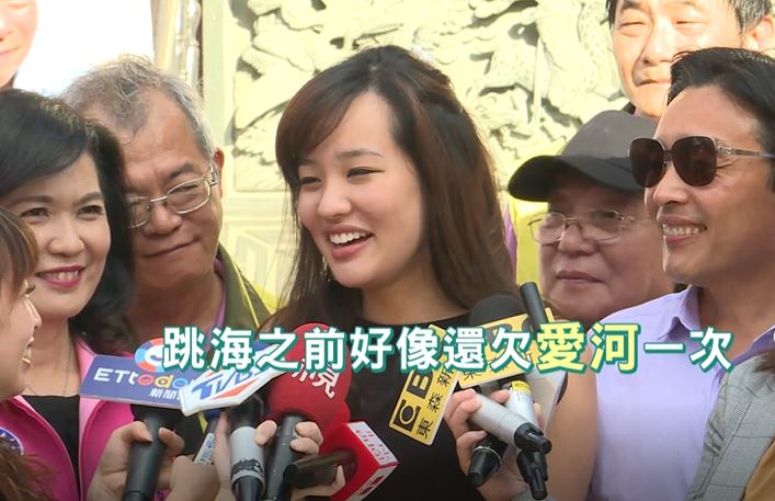 記者 vs.韓國瑜女兒韓冰:「跳海之前好像還欠愛河一次,哈哈哈,沒有啦開個玩笑。」