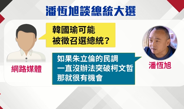 ▼潘恆旭表示,如果朱立倫的民調沒辦法超越柯文哲,韓國瑜就可能被徵召。(圖/東森新聞)