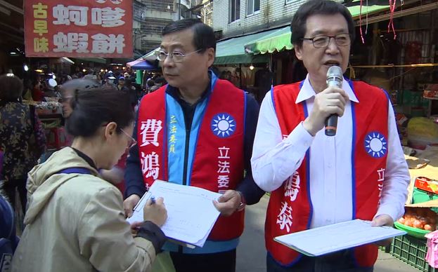 ▼費鴻泰至菜市場爭取以核減媒公投連署。(圖/東森新聞)