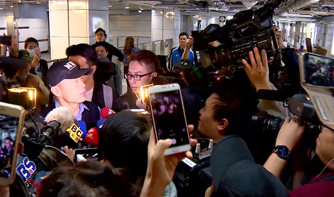 韓國瑜座車門一開,市長立刻衝下車,直奔目的,一秒鐘甩開媒體,韓國瑜就在新生南路上的大樓待了整整一小時。