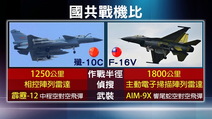 軍事專家分析,兩款戰機最大的差異在於實戰經驗,可說是不同體系的較勁,目前F-16V占上風,但是對岸除了有殲-10C匿蹤戰機,還有地面火箭軍增援,我國雖有了生力軍,面對的壓力 只增不減。