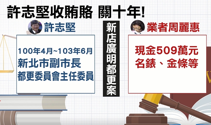 前新北市副市長許志堅在都更案中涉嫌收建商6百多萬元賄賂,不只安排兒子、親哥哥到建商公司領乾薪,甚至以嫁女兒名義收金條、名錶,一、二審判許志堅10年徒刑,褫奪公權5年,最高法院昨天(7日)駁回上訴,全案定讞,同時通知檢方啟動防逃機制。