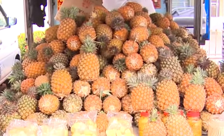 東森新聞記者羅旺哲vs.鳳梨攤商:「怎樣,可以嗎?這個汁會從嘴巴噴出來。」