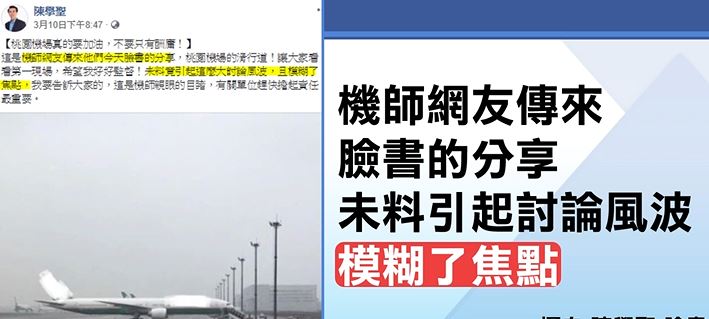 ▼陳學聖再Po文回應,是機師網友傳來,沒想到引起討論風波而且模糊了焦點。(圖/東森新聞)