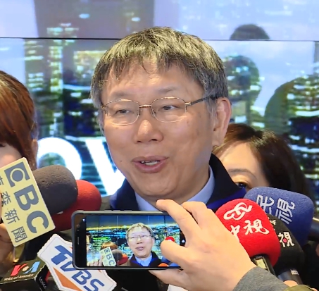 記者vs.台北市長柯文哲:「(怎麼看他說Ok?)Ok是他的評論,他們很好奇,他說他對這個(非傳統政治人物),覺得很有趣,大家很好奇就這樣。」