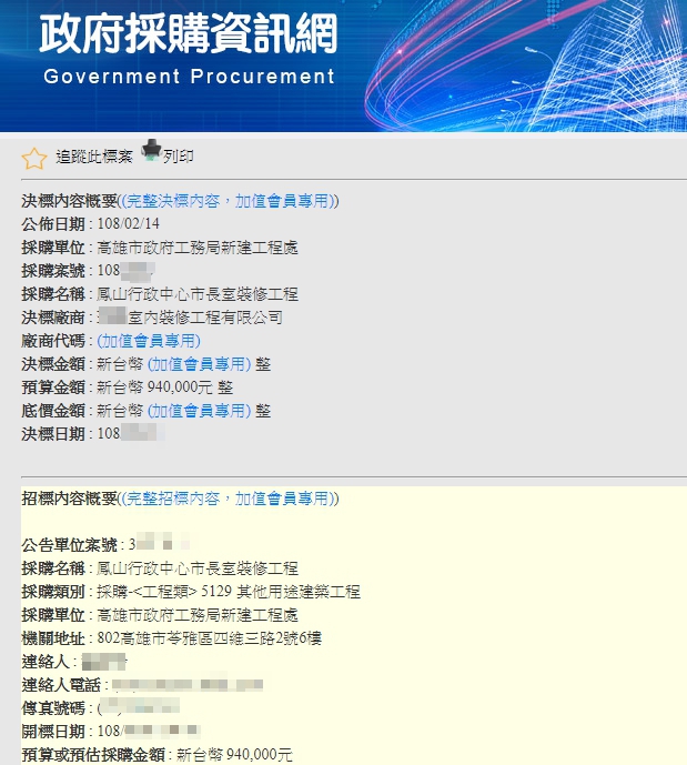 ▼裝潢的預算金額高達94萬元整。(圖/翻攝自政府採購資訊網)