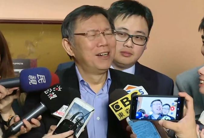 柯文哲表情一變,頓時語塞,貌似對高雄市長韓國瑜的言論,有些不解。
