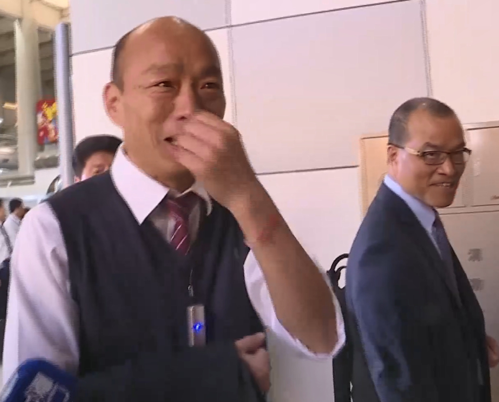 韓國瑜開心到一度要登機了,忘記護照在哪。