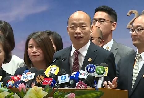高雄市長韓國瑜:「現在這個兩岸和平協議,根本就不在我現在的考量之內,我前面已經講過2020參選總統,都不在我的考量之內,怎麼會去談這個呢,而且我現在人站在這裡,我們這一群人站在這裡,我們所有的就是把高雄經濟衝起來。」