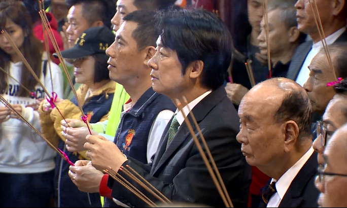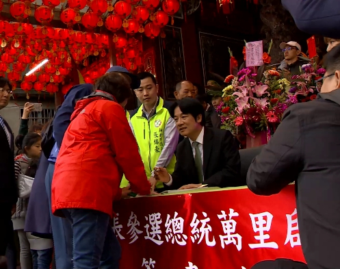 前行政院長賴清德vs.萬里昭靈宮人員:「再拜,祈求我們萬里的子弟,賴清德先生當選總統。」