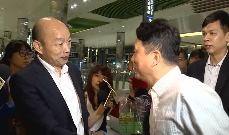 ▼和媒體、民眾輕鬆談笑,出國前短暫停留高鐵,韓國瑜、李佳芬依舊高人氣。(圖/東森新聞)