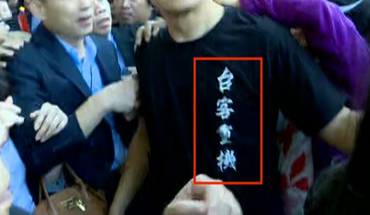 ▼穿寫著「台客重機」的黑色上衣到場維護秩序,但由於護衛隊態度過於強勢也一度和媒體爆發衝突。(圖/東森新聞)