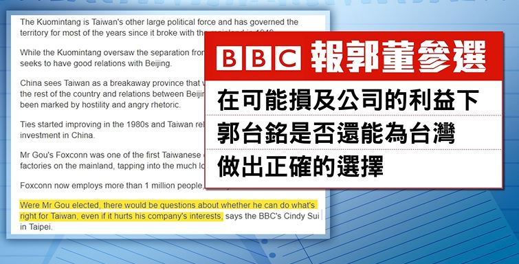 ▼就連英國廣播公司BBC也報導郭董參選。(圖/東森新聞)
