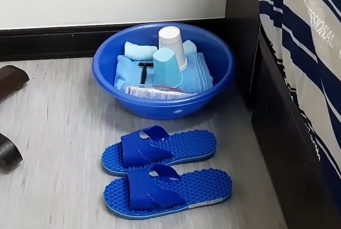 ▼一張單人床還有沙發跟冰箱,以及簡單的盥洗用具。(圖/東森新聞)